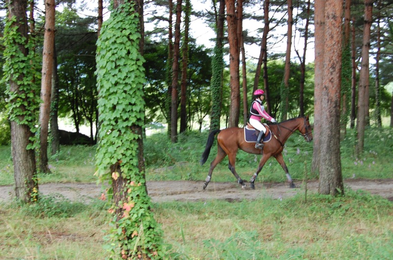 ちょうどその競技場で馬術の大会があったようで、ウォーミングアップ中でした。